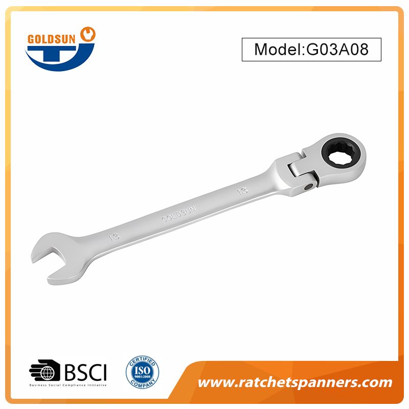 Nossa empresa, Gold Sun Tools, um dos primeiros fornecedores de chaves de catraca na China, com mais de 20 anos de experiência em fabricação, fornece chave de catraca de cabeça flexível com rotação de 180 ° e design de 12 pontos. Ele pode realizar trabalhos de reparo precisos em qualquer espaço.